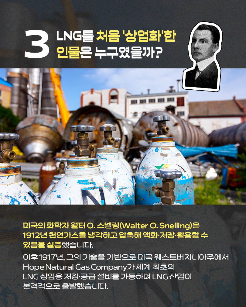 기체를 액체로 전환할 수 있다는 과학적 발견을 계기로 LNG 산업이 형성됐으며, 저장과 해상 운송 기술의 발전은 글로벌 에너지 공급망을 가능하게 했습니다.