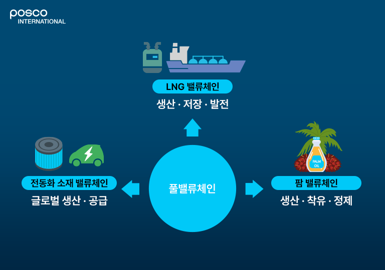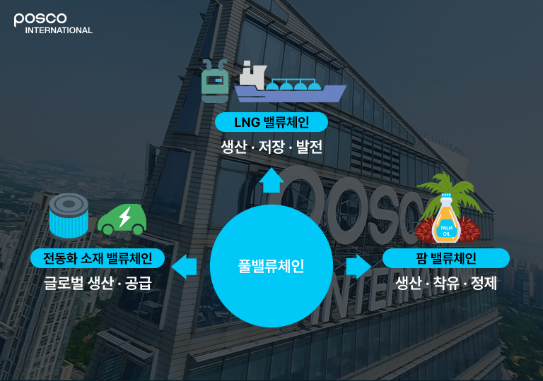 포스코인터내셔널의 풀밸류체인 구축 전략은 각 사업을 개별적으로 키우는 방식이 아니라, 사업의 시작부터 끝까지를 스스로 통제할 수 있는 구조를 만드는 데 초점이 맞춰져 있습니다.