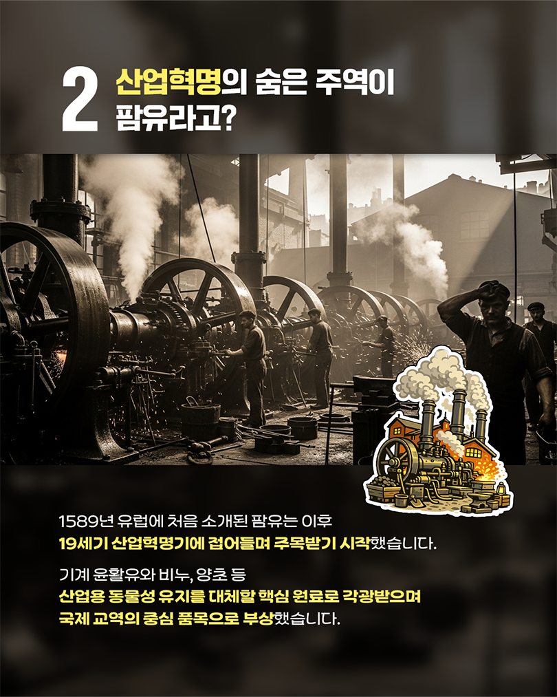 1589년 유럽에 처음 소개된 팜유는 19세기 산업혁명기를 맞이하며 산업적 전환점을 맞이합니다.