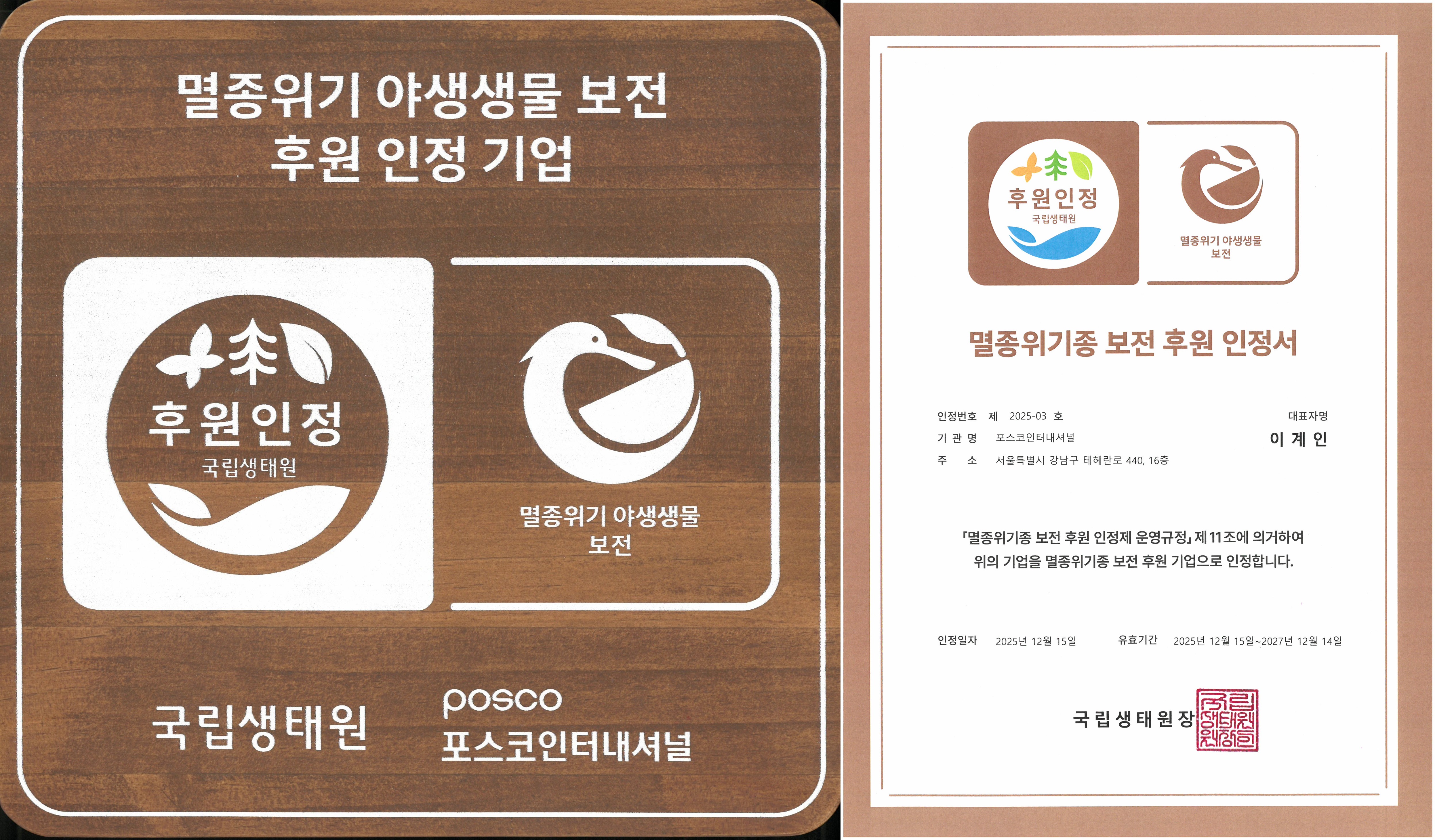 포스코인터내셔널이 환경부 산하 국립생태원이 주관하는 ‘멸종위기 야생생물 보전 후원 인정제’의 인정 기업으로 선정됐다.